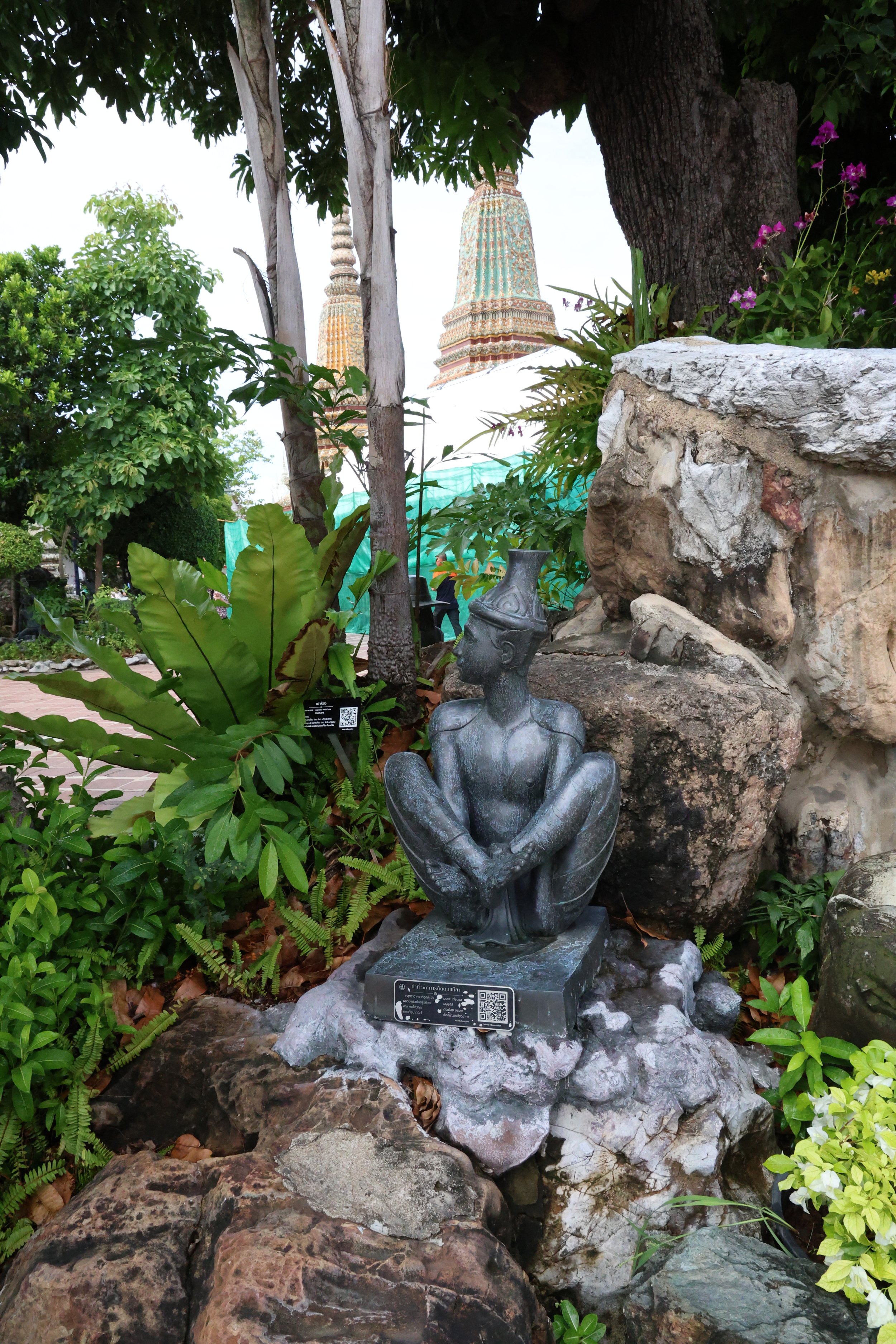 I walked almost everywhere and most of my time was spent exploring Wat Pho, the temple complex that houses the Reclining Buddha. I’d seen pictures, but pictures don’t come close to capturing how enormous that golden Buddha actually is. Standing next to the feet and looking down the length of the room—the head is so far away it almost doesn’t register. The rest of the complex is just as impressive. Rows of golden seated Buddhas lined long corridors with red ceilings. Ornate tiled pagodas outside that you could spend an hour photographing and still not get right. I tried.