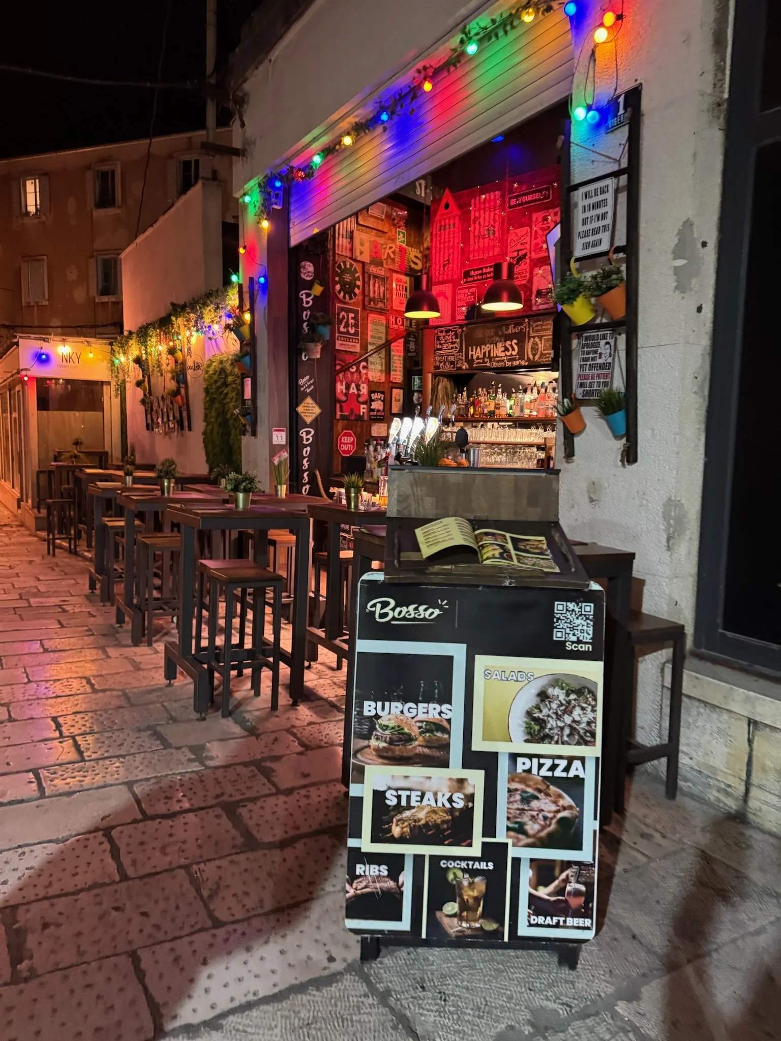 After the work call we went looking for a late dinner. It was raining, Old Town was mostly closed for the night, and the only place we found was Bosso Steak and Burger House which had outdoor seating only. Thankfully, the burgers were so good we barely noticed the weather. We really lucked out in that regard. It would have sucked to sit in the cold rain eating crappy food. Lol.